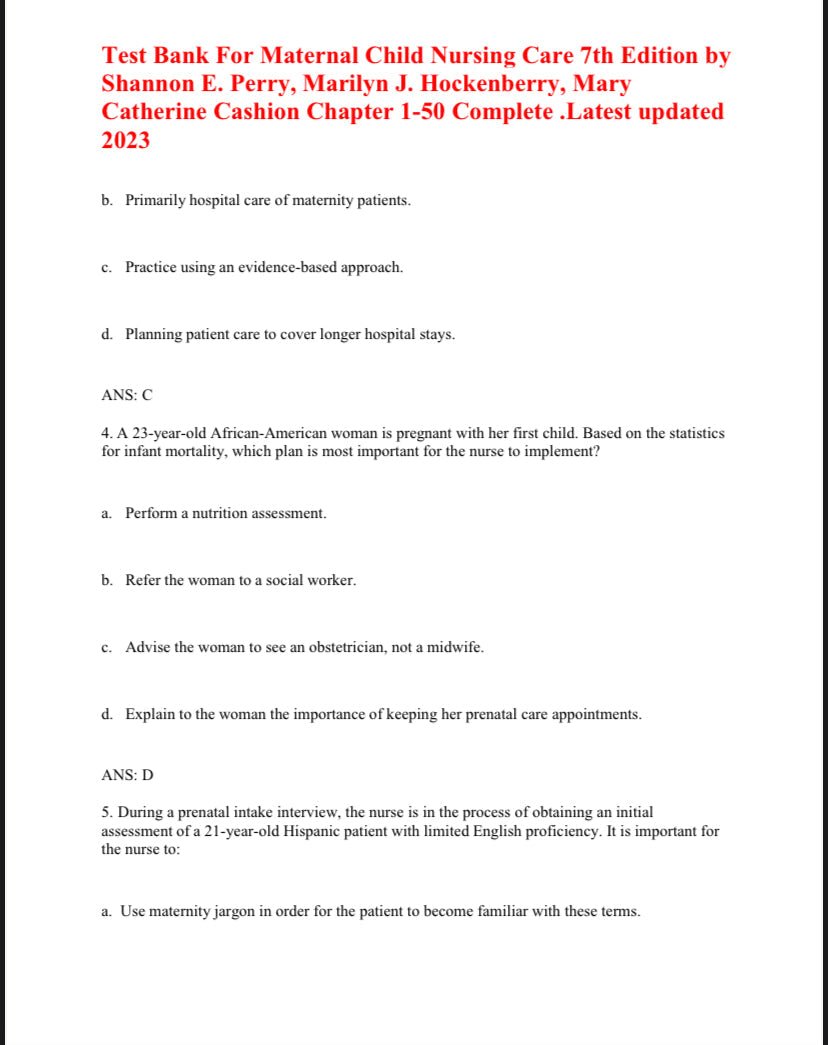 Test Bank For Maternal Child Nursing Care 7th Edition by PerryTest Bank For Maternal Child Nursing Care 7th Edition by Perry