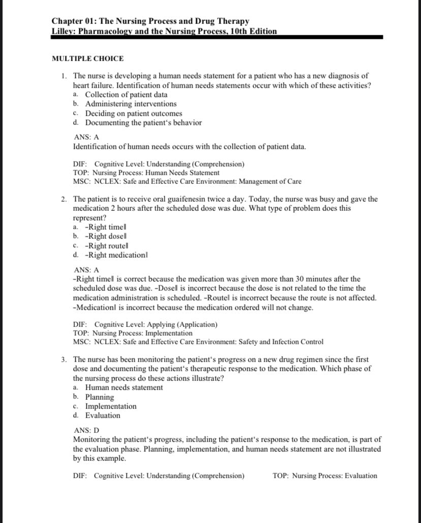 This Test Bank is developed to accompany the 10th Edition of Pharmacology and the Nursing Process by Lilley.
