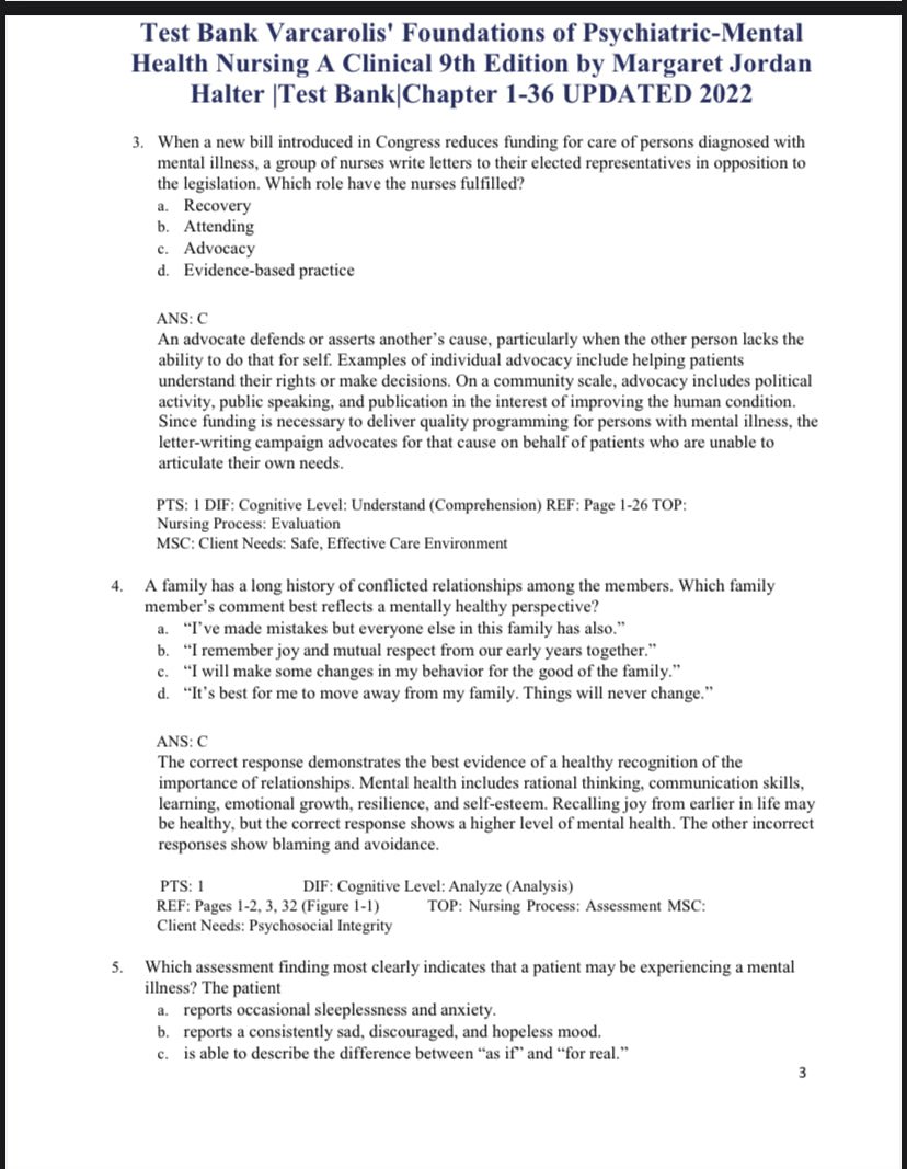 This Test Bank is created to accompany the 9th Edition of Varcarolis’ Foundations of Psychiatric-Mental Health Nursing: A Clinical Approach by Margaret Jordan Halter.
